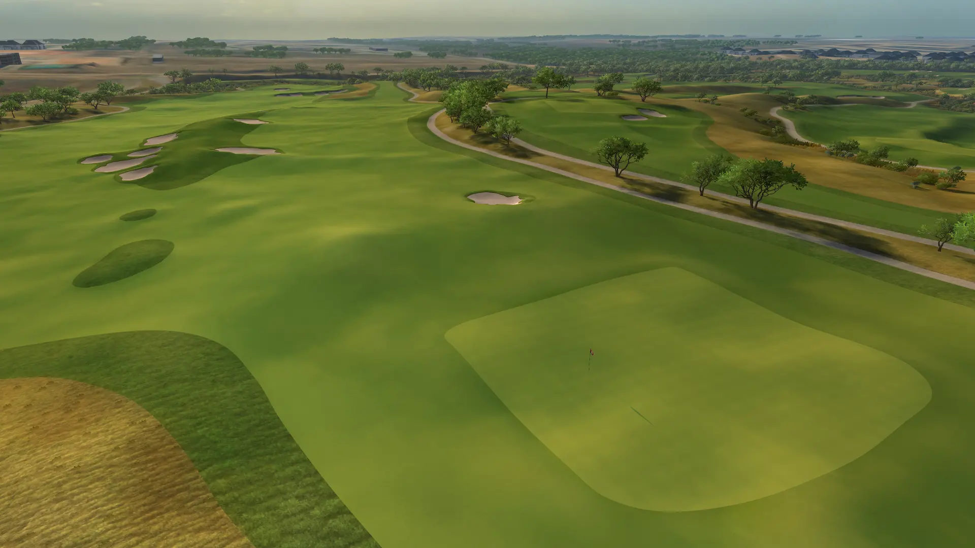 Highlights include the par-3 third hole with a split-tier green and the par-4 14th featuring a dramatic Biarritz green complex.